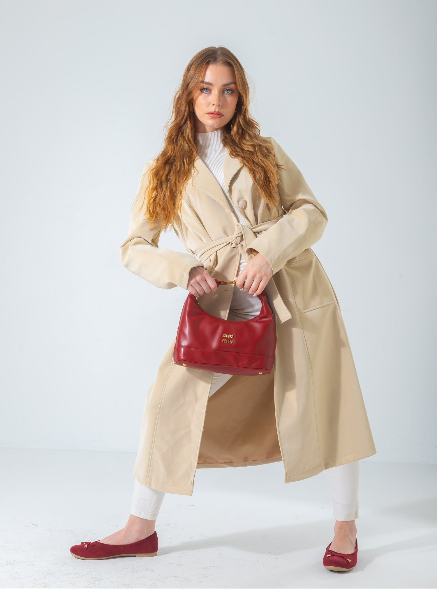 Buckled Mini Duffle Satchel Bag-camel-gray