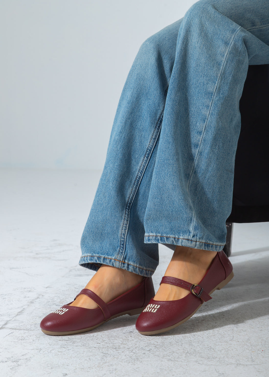 Crafted from premium leather, this marron buckle strap flat combines timeless elegance with practical functionality....
