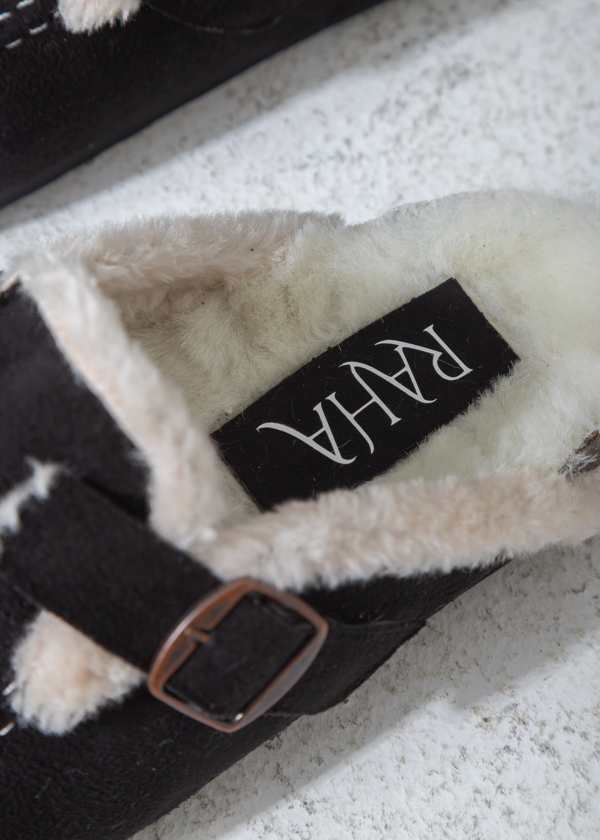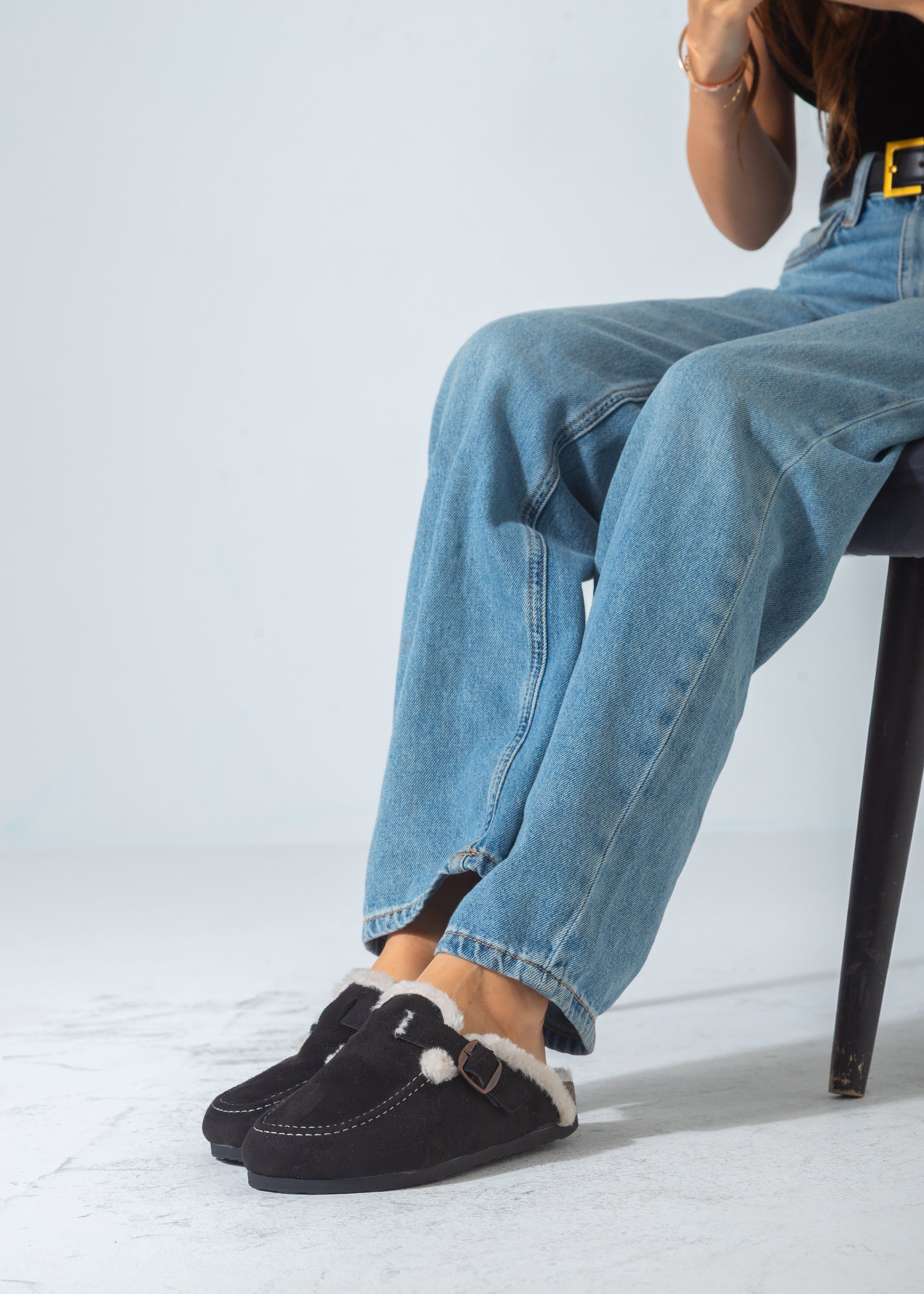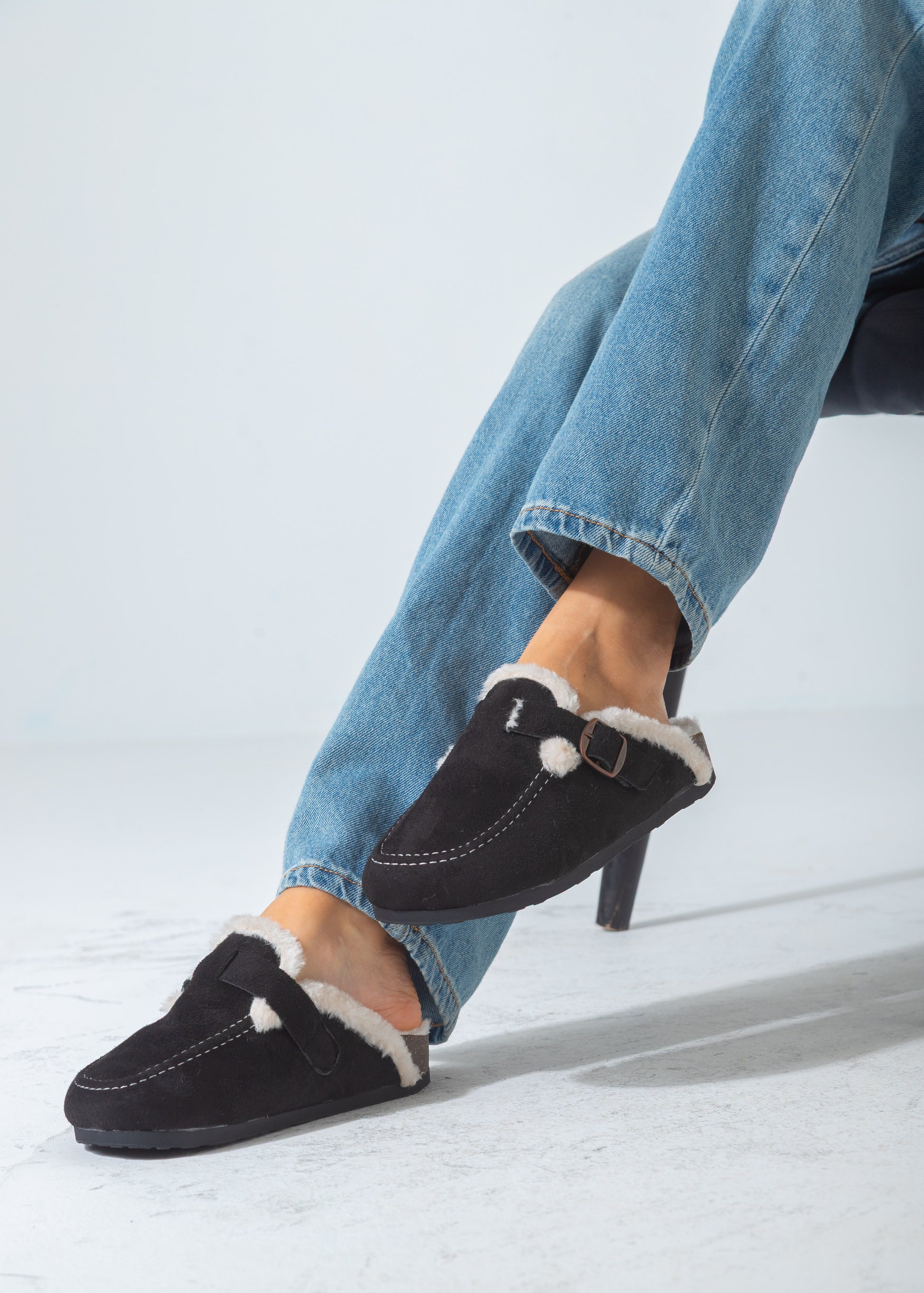 Faux-Fur Buckle Clogs-black