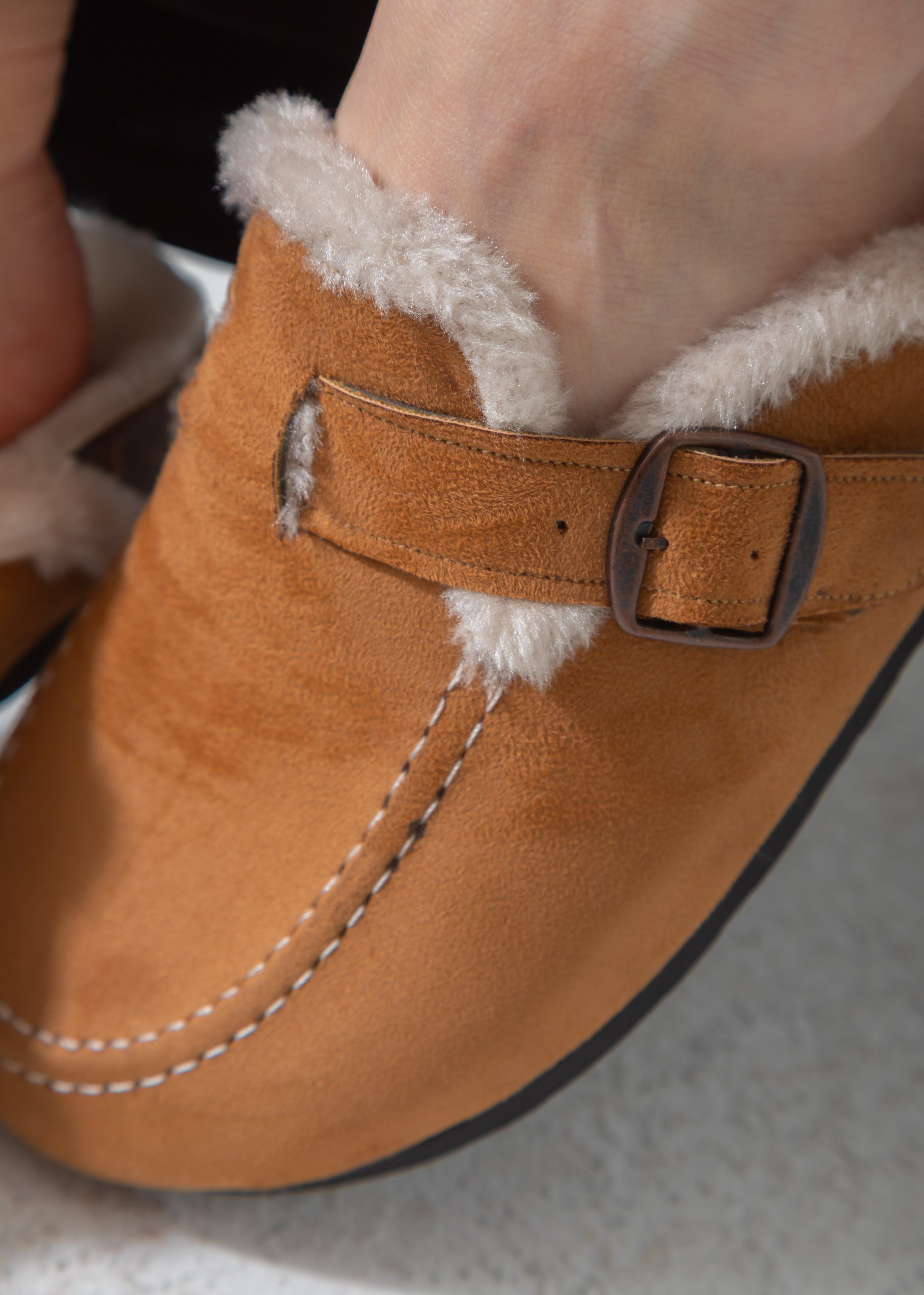 Faux-Fur Buckle Clogs-camel
