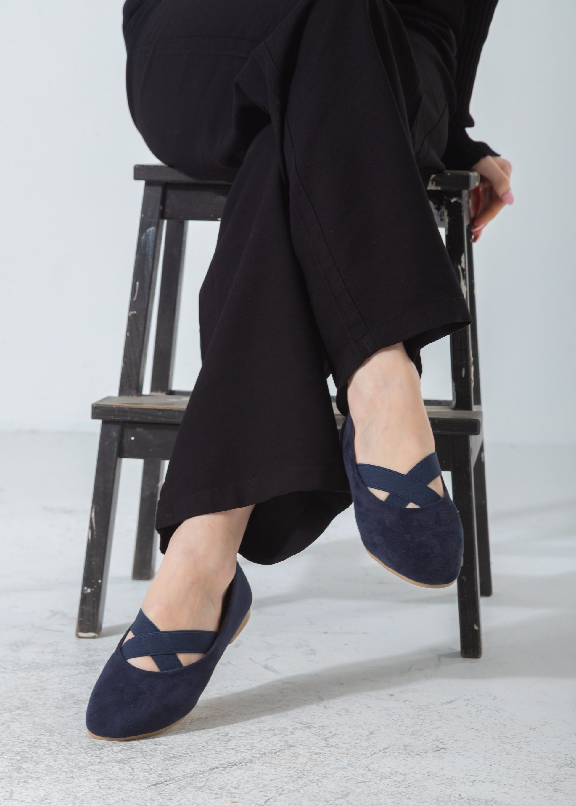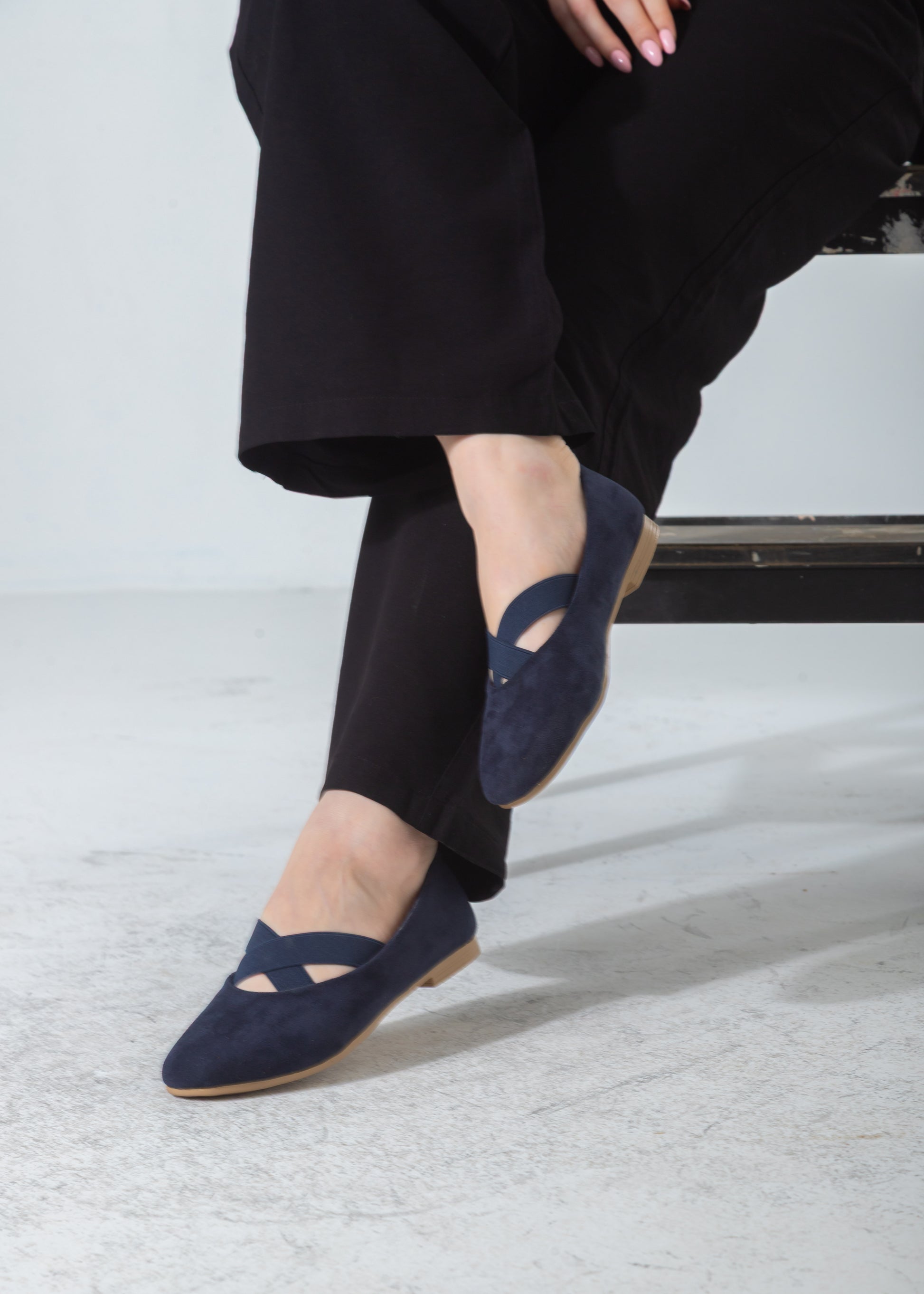 Suede Criss-Cross Elastic Flat-dark blue